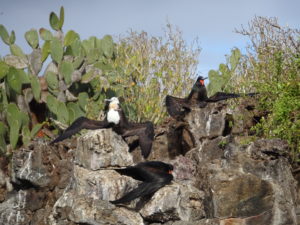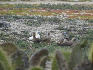 ナスカカツオドリとその雛鳥、そしてグンカンドリ、ウチワサボテンも立派です。